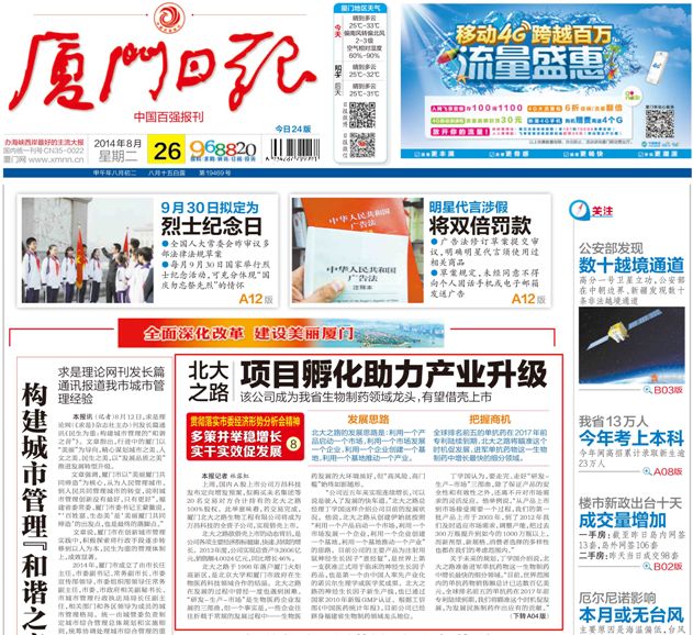 丁學國同時透露,北大之路的發展戰略與“百”“千”“萬”三個數字勾連:引進百名一流生物醫藥人才,孵化千個生物醫藥項目,集聚萬億資金,助力産業升級。“我們拟将引進項目進行孵化,帶動廈門乃至福建生物醫藥産業發展。同時,公司還有望建成‘生物金融超市’,集聚萬億資金,爲生物醫藥産業提供全方位、個性化、保姆式服務。”