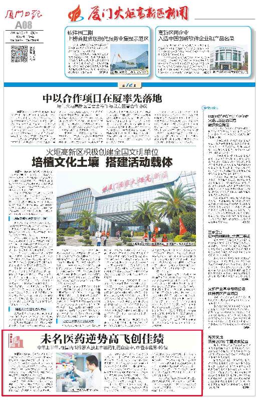 我市生物醫藥領軍企業未名生物醫藥有限公司繼續保持快速增長。近期披露的半年報顯示,今年上半年未名醫藥實現營業收入3.4億元、淨利潤1.2億元,同比分别增長18.2%和32%。另據工信部7月12日發布的數據,今年1-4月,我國規模以上醫藥工業增加值同比增長9.6% ,增速較去年同期減少1.1個百分點。